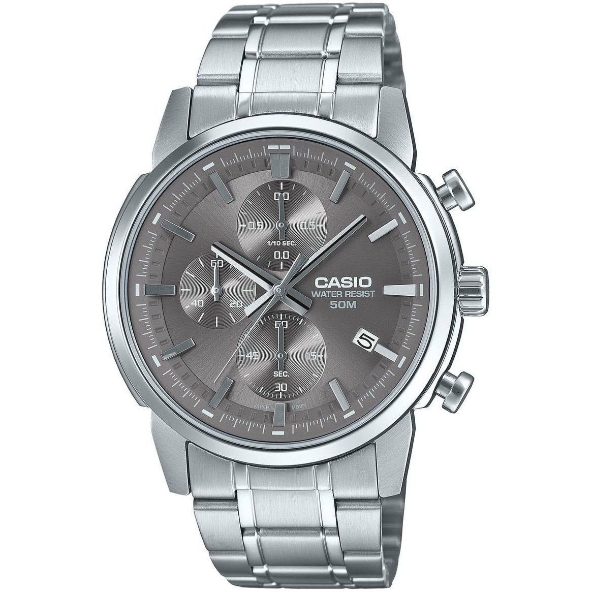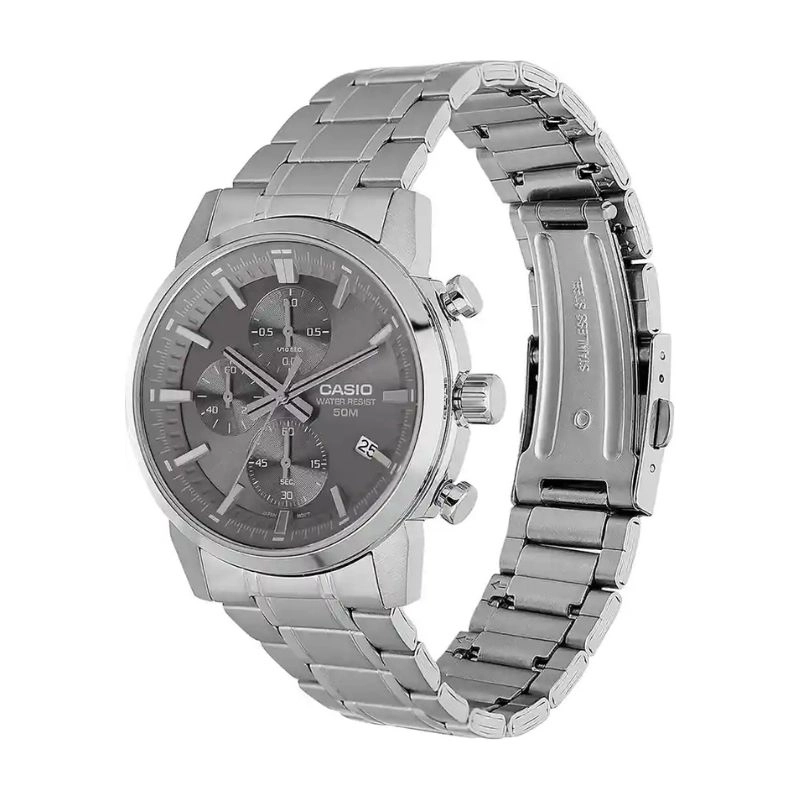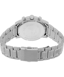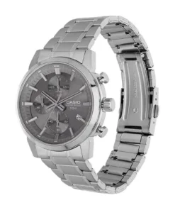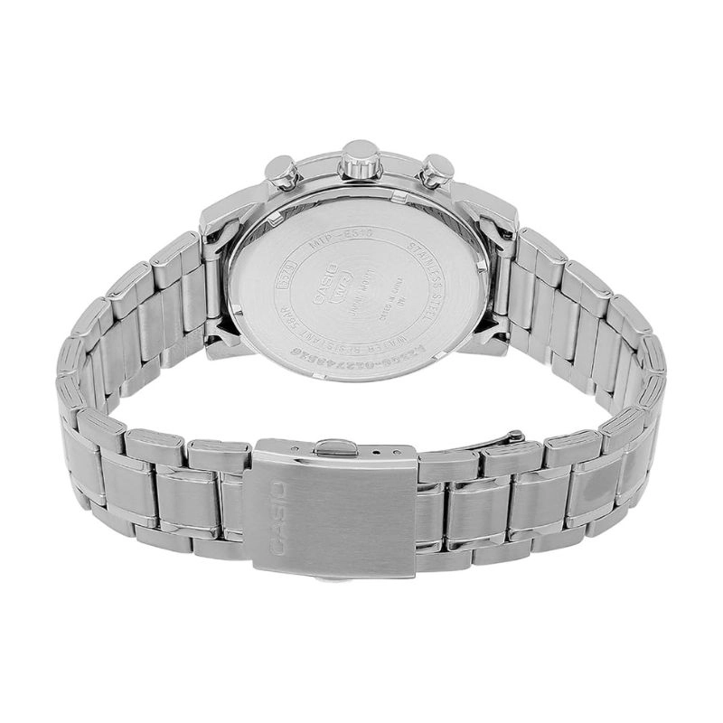 ساعت Casio MTP‑E510D‑8AVDF ترکیبی از طراحی کلاسیک و کیفیت ساخت بالا است؛ مناسب برای استفاده روزمره و موقعیتهای نیمه رسمی. جنس بدنه و بند تماماً استیل ضدزنگ بوده و شیشه معدنی آن در برابر خط وخش مقاوم است. این مدل دارای کرونوگراف، تقویم روز شمار و نمایش زمان ۲۴ ساعته است. مقاومت در برابر آب تا عمق ۵۰ متر (۵ ATM) به شما امکان استفاده در روزهای بارانی یا هنگام شنا سبک را میدهد بی آنکه نگران آسیب باشید. عمر باتری معمولاً تا 3 سال بوده و دقت ساعت در حدود ± ۲۰ ثانیه در ماه است.