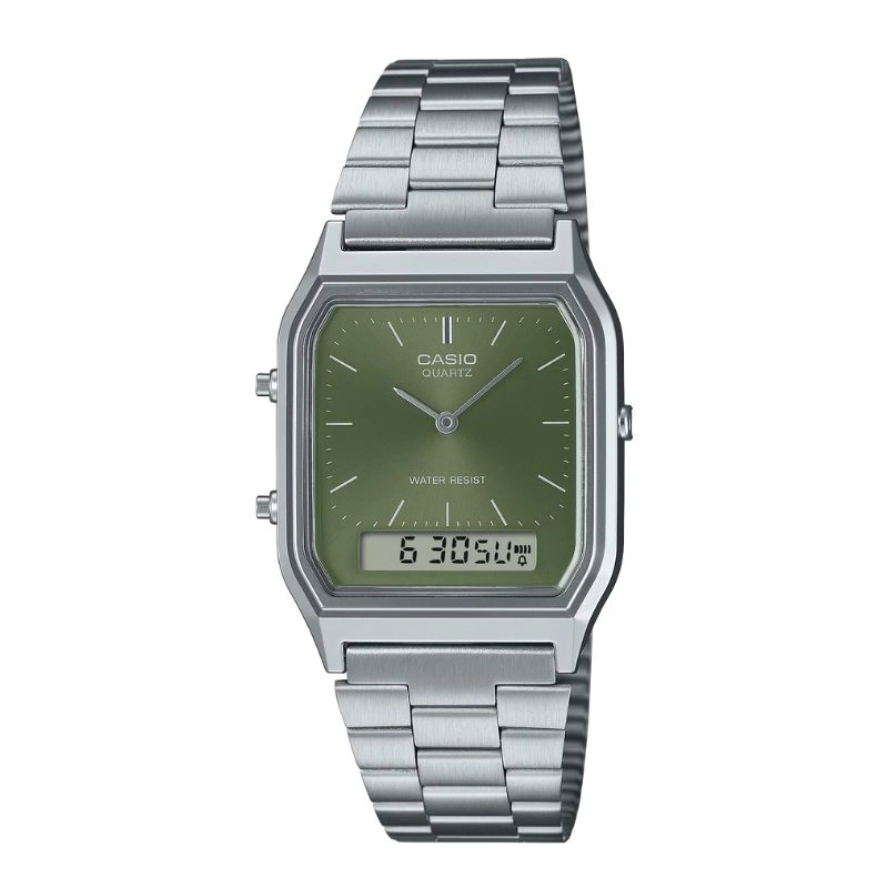 مدل AQ-230A-3AMQYDF یک ساعت دیجیتال و آنالوگ با طراحی زیبا و عملکرد دقیق است. این ساعت برای آقایان و خانم هایی که در استایل روزانه شان از لباس های ساده و کلاسیک استفاده می کنند، برای شرکت در جلسات کاری یا ملاقات دوستانه ساعت مچی کلاسیک انتخاب مناسبی است.این نوع ساعت ها همزمان میتوانند دو زمان مختلف ( آنالوگ – دیجیتال) را به شما نشان دهند.